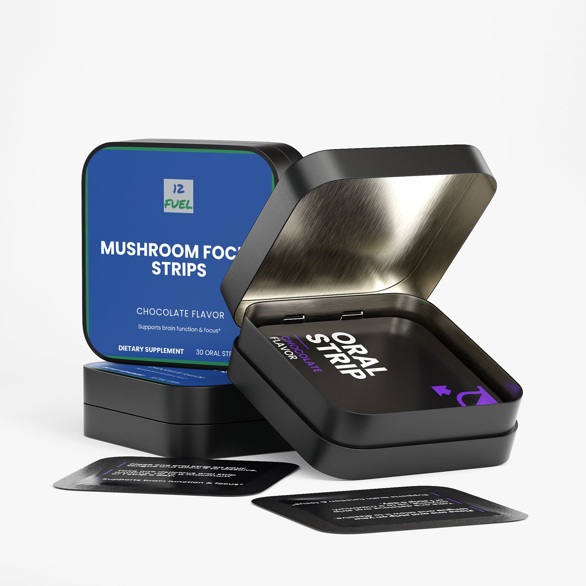 Mushroom Focus Strips are chocolate-flavored, on-the-go oral strips designed to support mental clarity, focus, and everyday wellness as part of a balanced lifestyle. Each smooth strip dissolves on your tongue and delivers a curated blend of functional mushroom extracts, so you get targeted support without capsules or mixing.